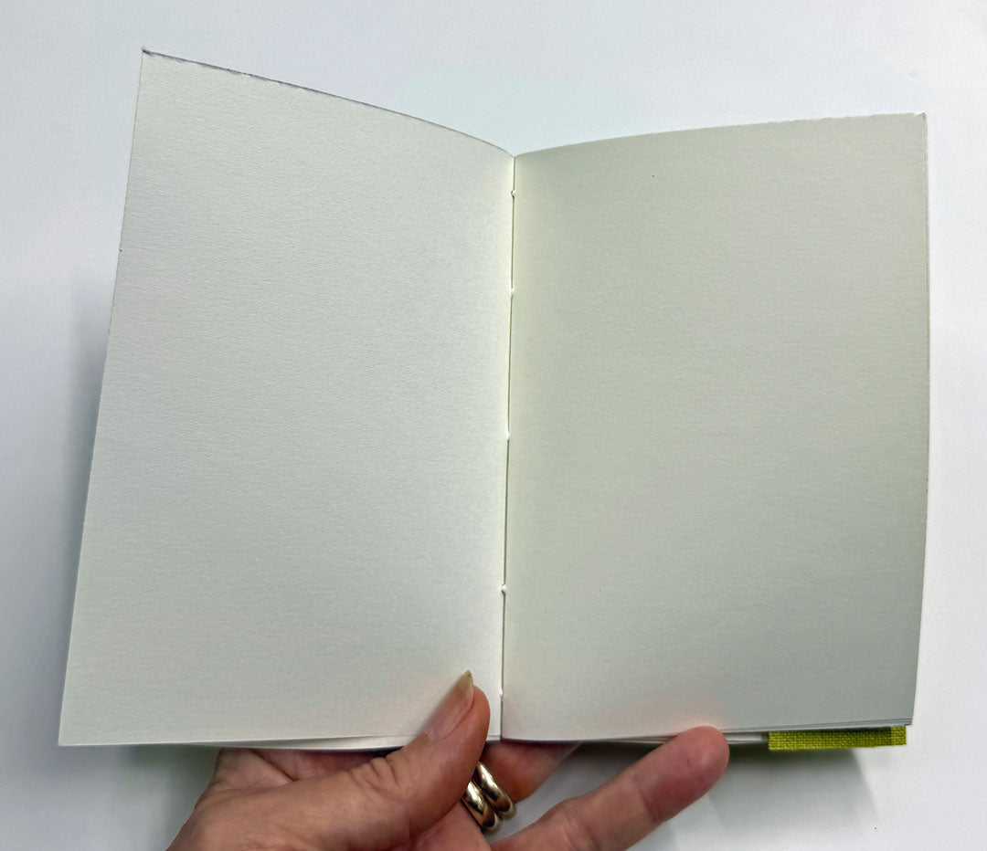 En liten bok som påminner om grönskans löfte – varje sida ett nytt avstamp mot dagen som väntar. De vita, blanka bladen bär på möjligheten att börja om, oavsett vad som var igår. Perfekt för dina morgontankar, dagens intentioner eller skisserna som vill födas fram i ljuset av en ny början.