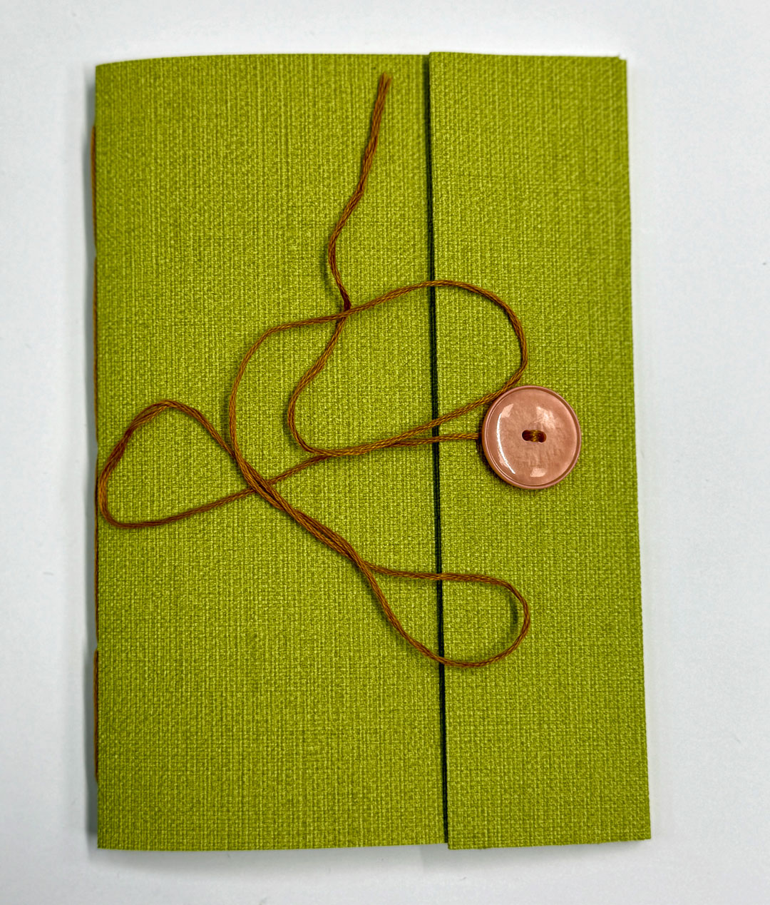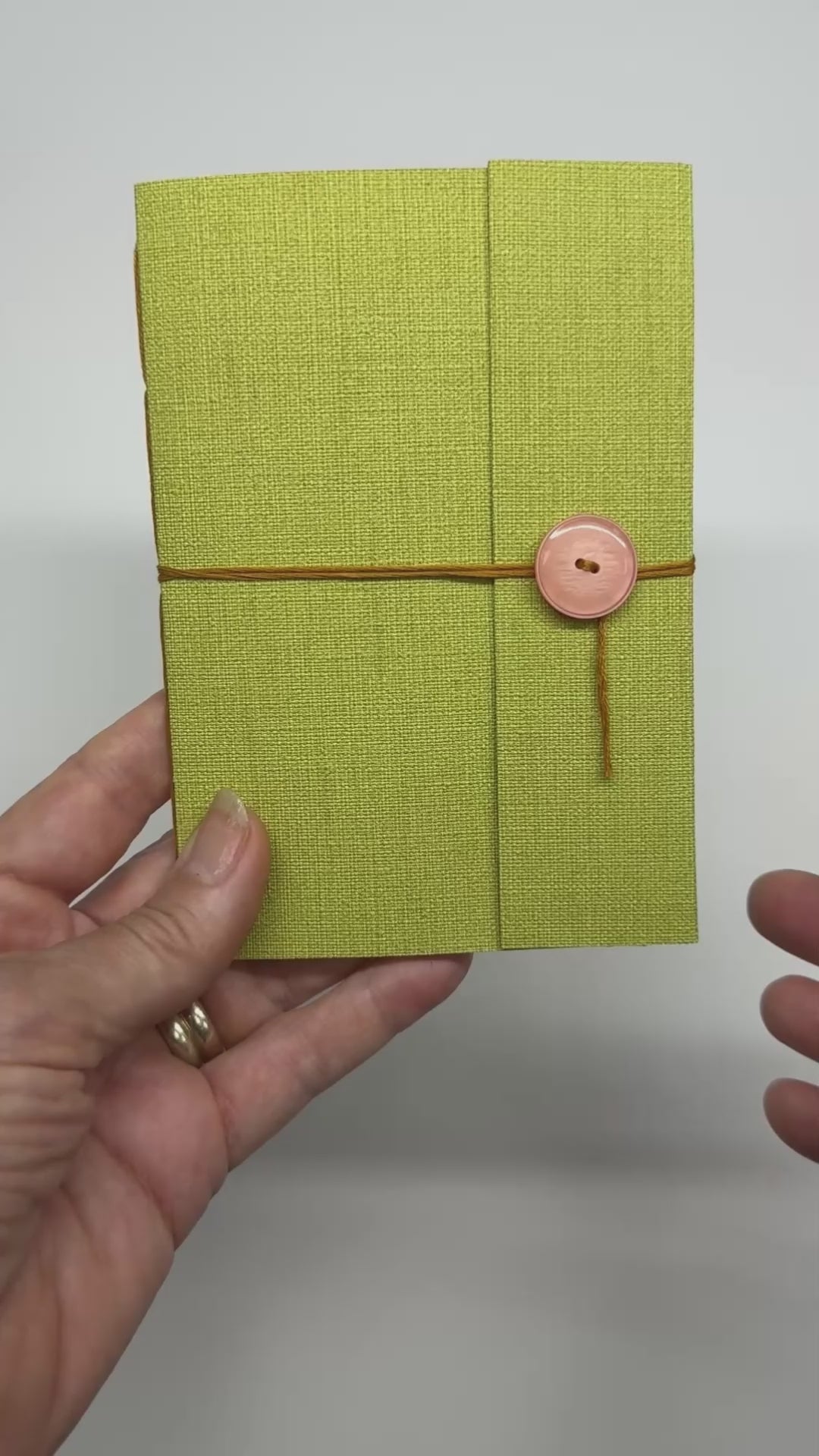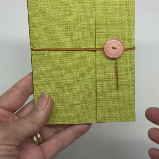 Omslag i återanvänt tapetpapper med rosa knapp som håller dina hemligheter på plats.