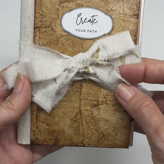En helt unik anteckningsbok av återvunnet & återfunnet material som gamla kuvert, brev, böcker, tygbitar, snören, tapetprover, smycken och annat, valt med hjärtat och omvandlat till något nytt, vackert och meningsfullt.