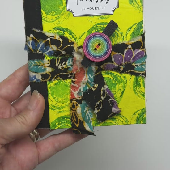 En helt unik anteckningsbok av återvunnet & återfunnet material som gamla kuvert, brev, böcker, tygbitar, snören, tapetprover, smycken och annat, valt med hjärtat och omvandlat till något nytt, vackert och meningsfullt.