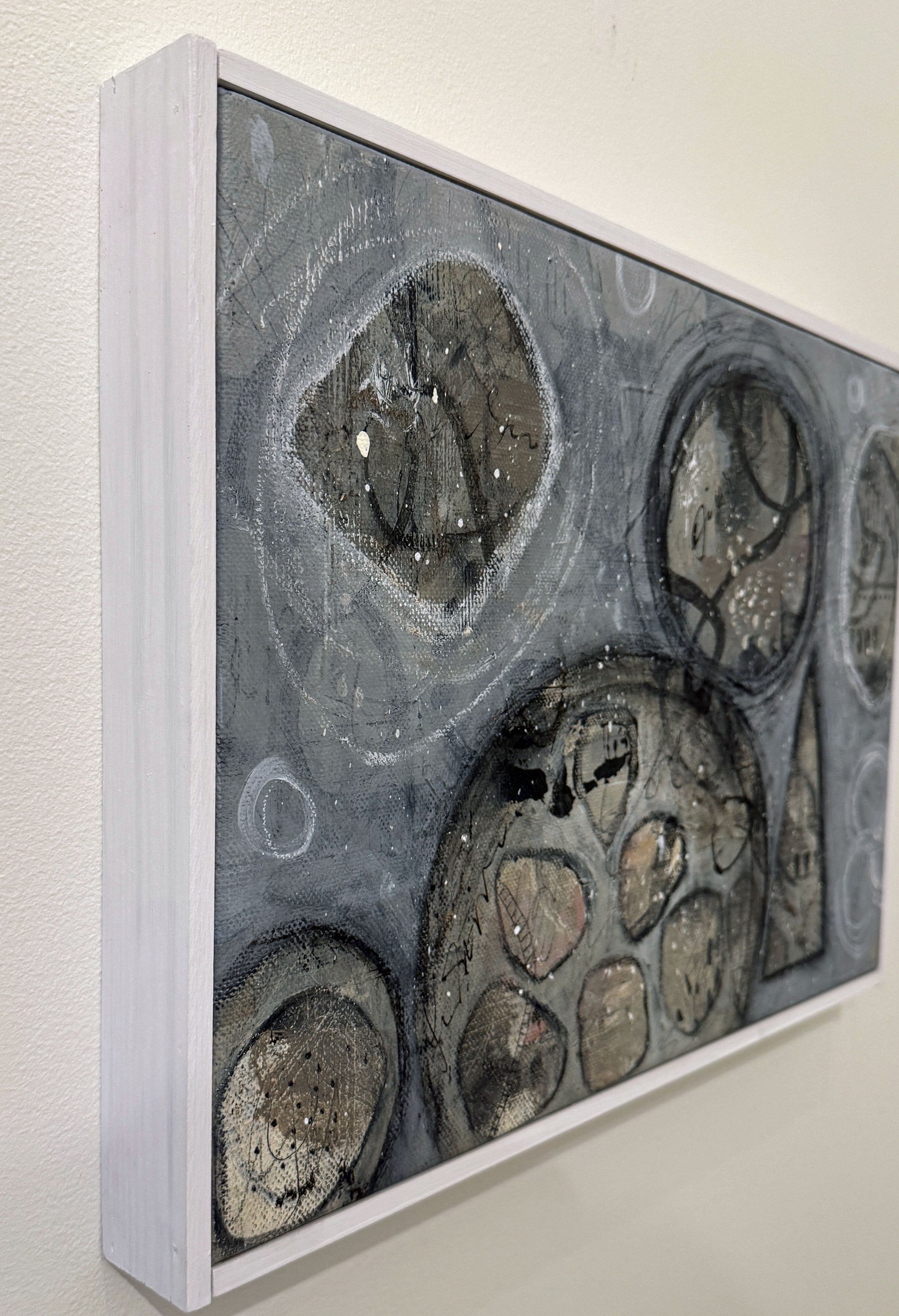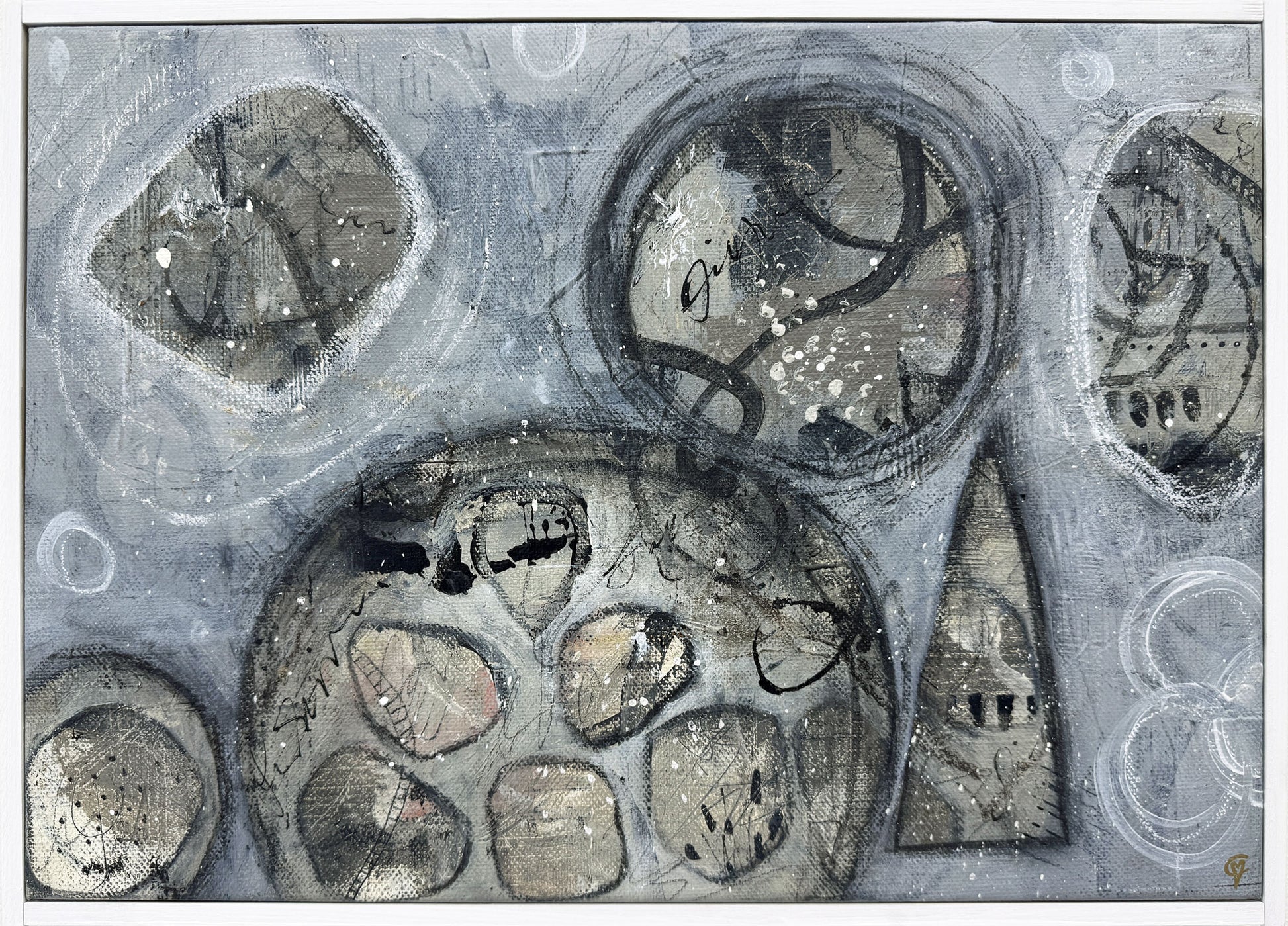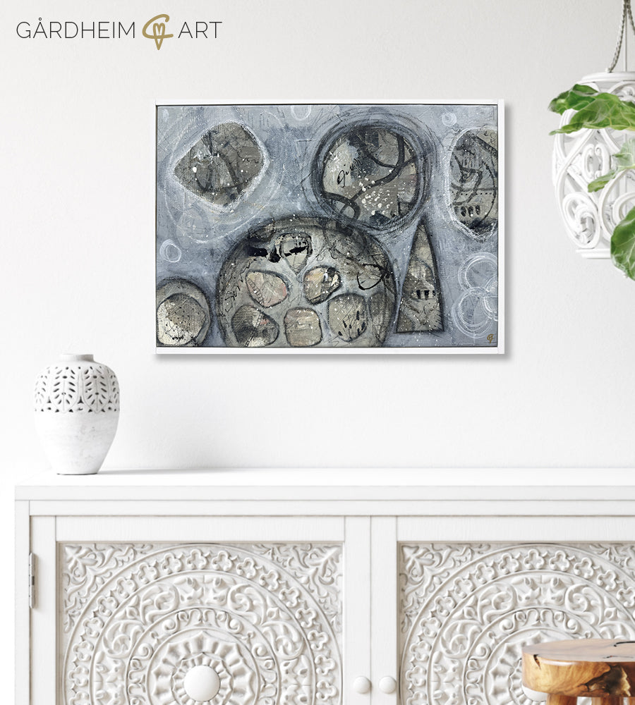Med akryl, blandteknik och många olika verktyg skapar jag textur och djup, som en dans mellan styrka och sårbarhet. Lager på lager-teknik och transparens låter det underliggande, dolda anas – så som jag ofta känner av det som inte alltid är uppenbart för andra. Jag inspireras av råa och slitna ytor, som i gamla hus och industriella miljöer, och omfamnar svärtan, det trasiga och sårbara, som så ofta gömmer djup skönhet.