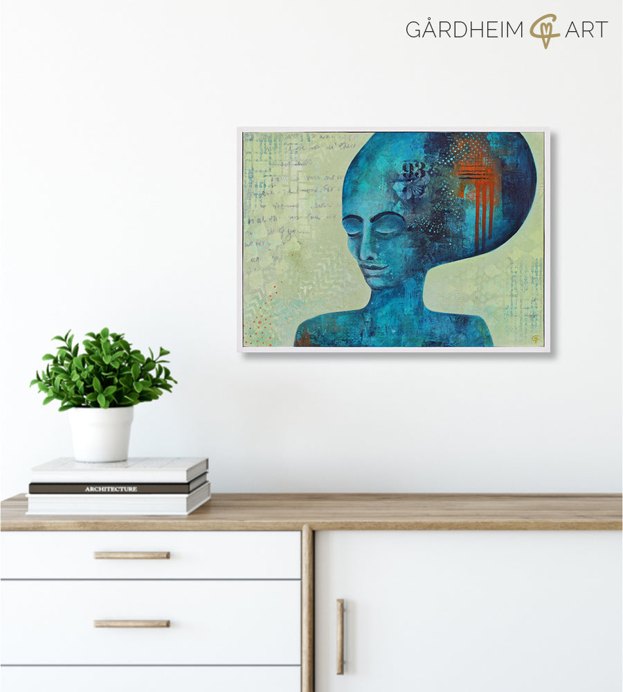 Storlek: 42 x 30 x 4 cm med vitmålad träram