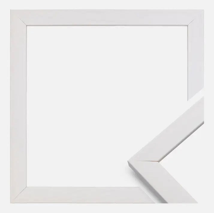 Vit, matt träram med lätt rundad profil och riktigt glas.