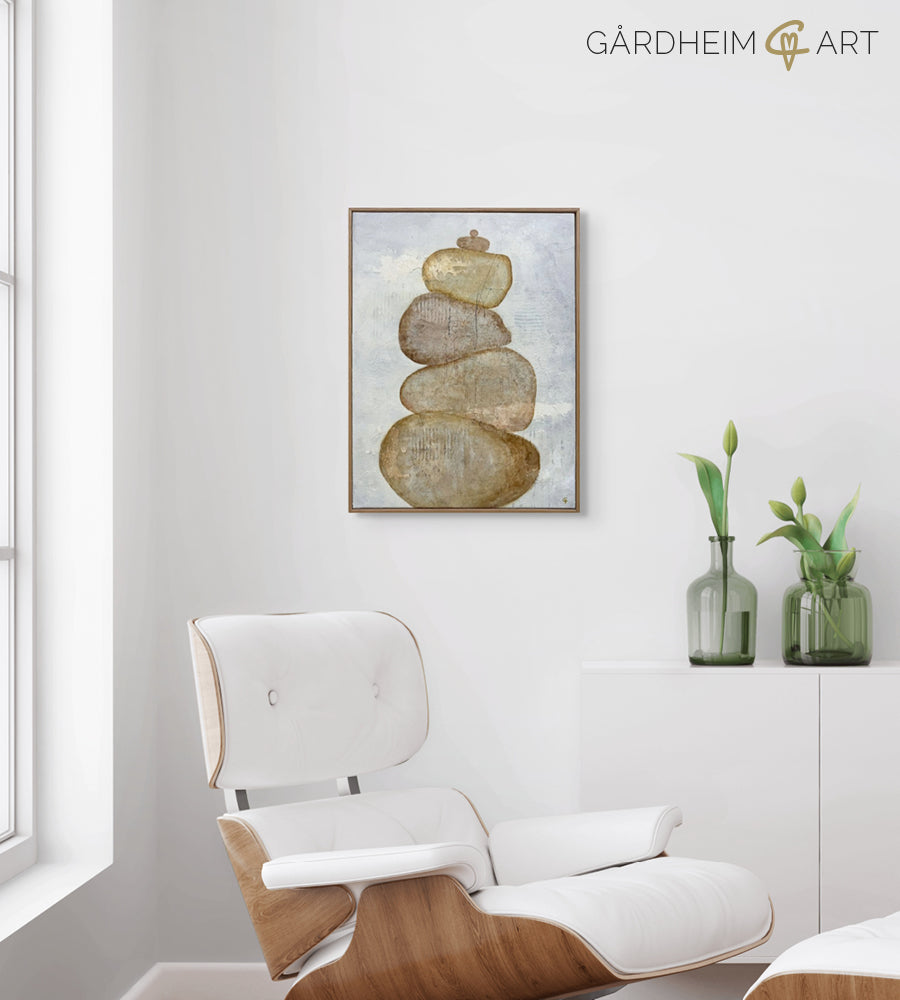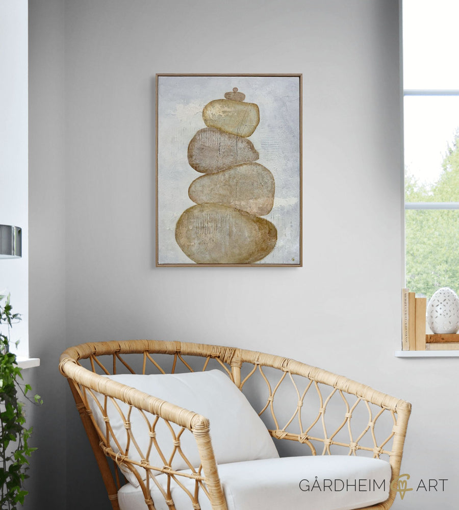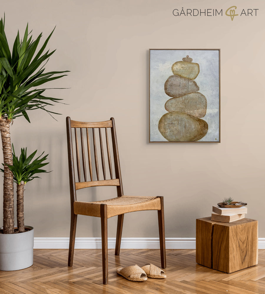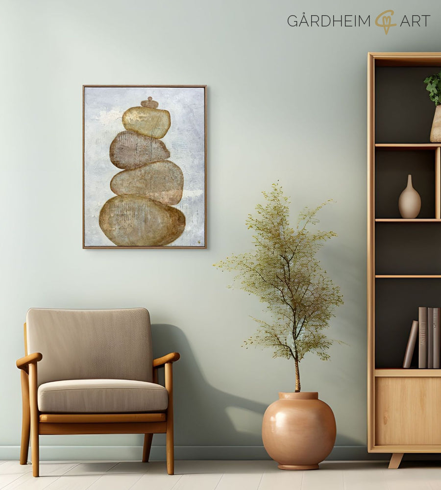 De här mjuka, jordnära stenarna är som tysta väktare – solida och stadiga, men samtidigt ömsinta. Deras rundade former och slitna ytor bär spår av tid, visdom och tålamod, och tillsammans skapar de ett rum av inre ro.
