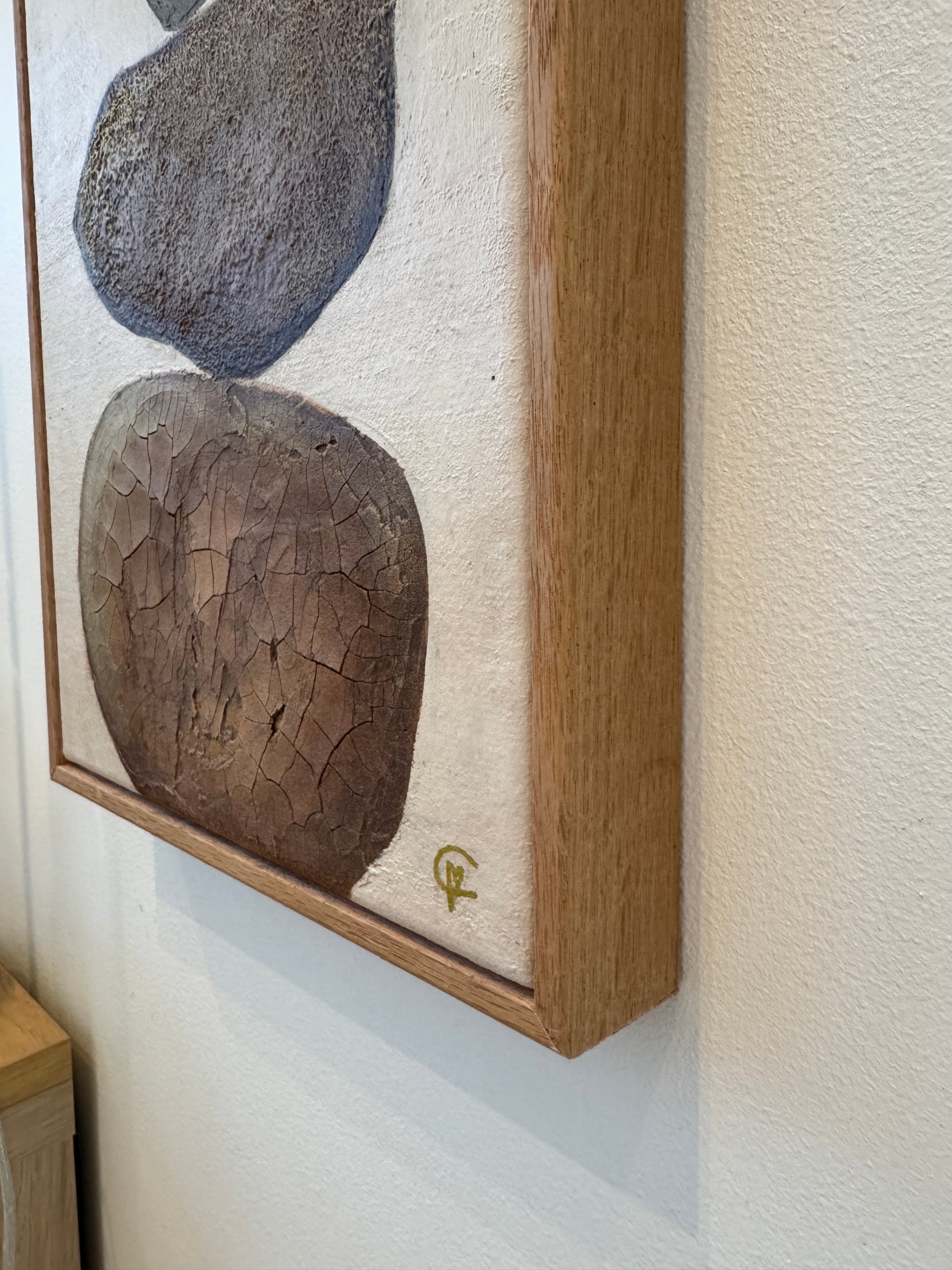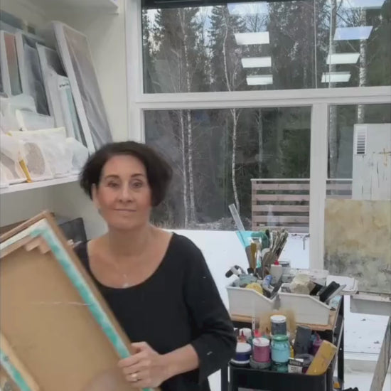 Teknik: Akryl & mixed media på jutecanvas monterad på en 4 cm djup kilram