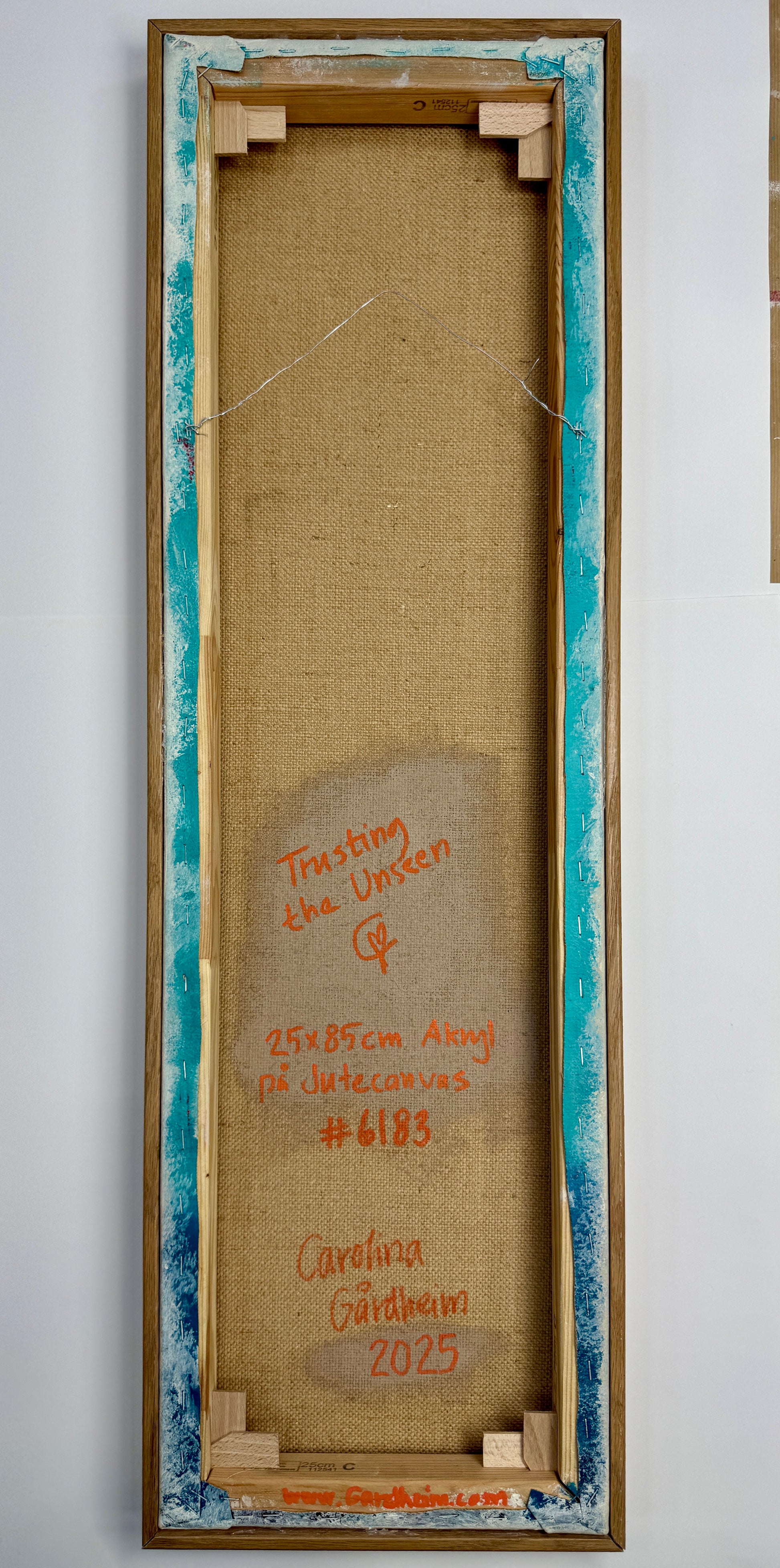 Trusting the Unseen är en målning för dig som befinner dig mellan steg, mellan val, mellan världar. Ett visuellt löfte om att det du inte ännu kan se kan vara det som faktiskt håller dig, om du vågar lita på dig själv och livet.